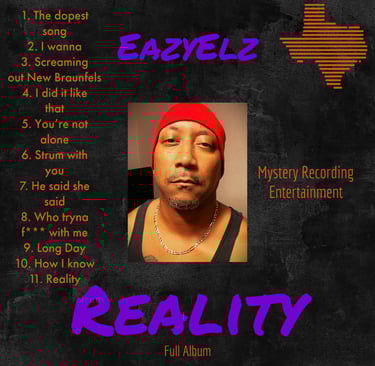 We are Mystery Recording Entertainment, an independent record label based in the Texas Hill Country supporting the talented artist EazyElz. As of now EazyElz has released three (3) studio produced albums Hydrogen (2022), Reality (2023), and Credits Due (2024).